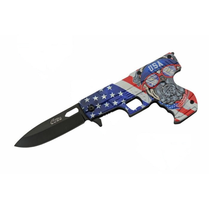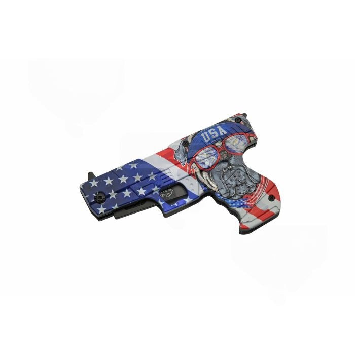 - Type: Unique & Cool Gun Knife W/ Bull Dog and US Flag Design