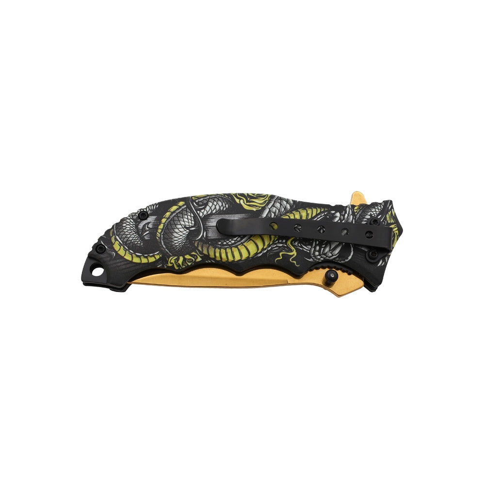 Dark Side Blades 3D Gold Cobra Snake Fantasy & Unique Pocket Knife