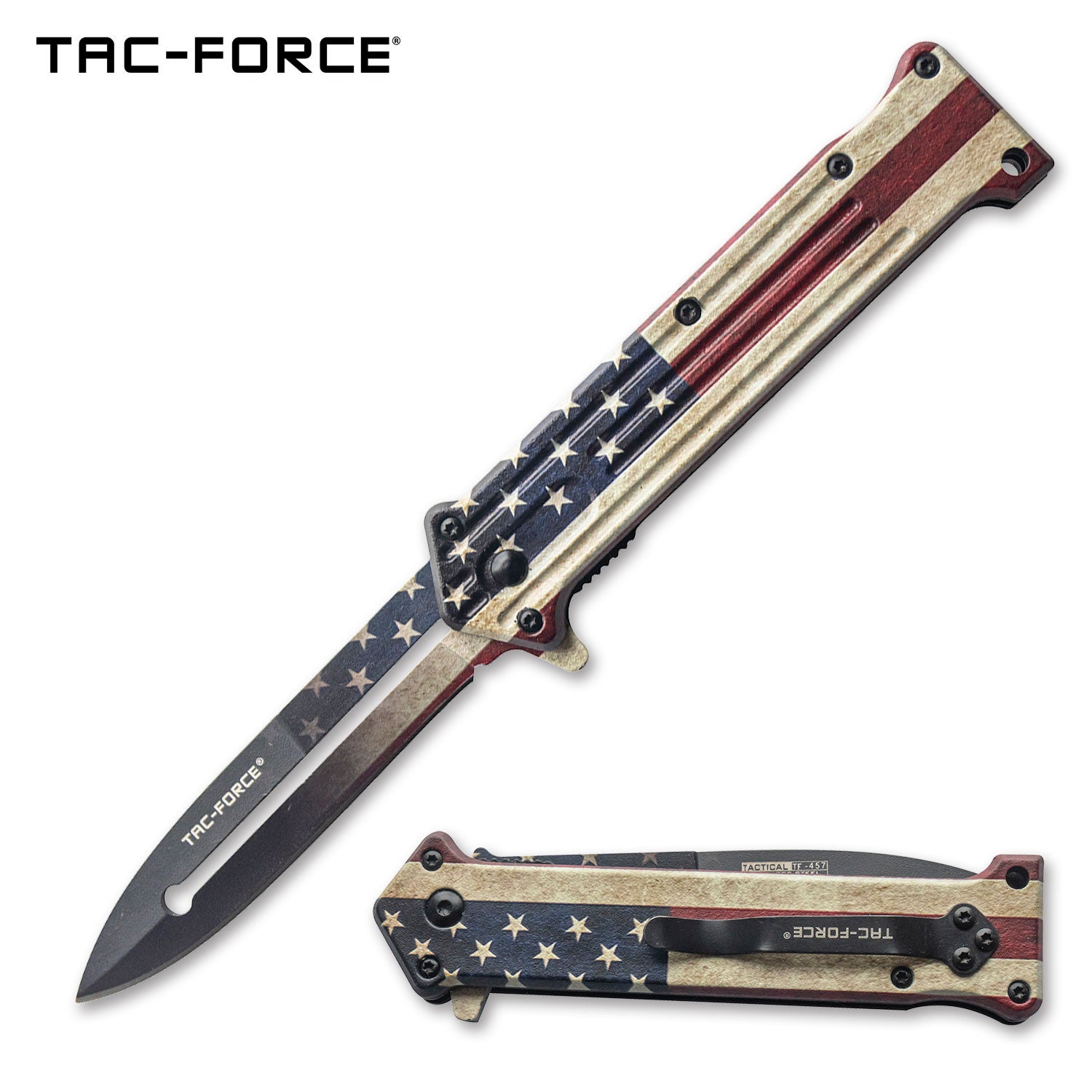 • Type: Tac Force U.S. Flag Stiletto Spring Assisted Unique Pocket Knife For Sale